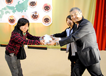| ONE FOR ALLの活動を通じて皆様からお預かりしたご寄付を被災地の復興支援に変えてお届けいただいている「赤い羽根の共同募金会」様より、日頃の寄付への感謝状をジョイフェス4のステージにてお送りいただきました。 | |