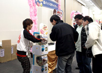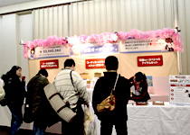 ブースには、関西初登場の「ドルフィー®クリアファイル SUSHIデザイン」、天使の里8周年記念フェアの幼天使 美加と健の「ポストカード&缶バッジセット」など、たくさんのチャリティーグッズが並びました。