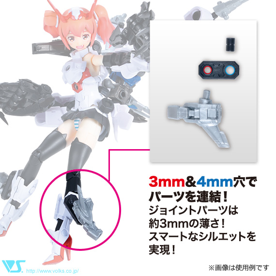 4mm軸のブロッカーズパーツに、3mm軸のアクションフィギュアやキットのパーツを接続可能! 3mm軸が中心の「03」と3mm穴が豊富な「04」。ジョイントの大きさが異なるキットを組み合わせ、自由に組み替えを楽しもう!!