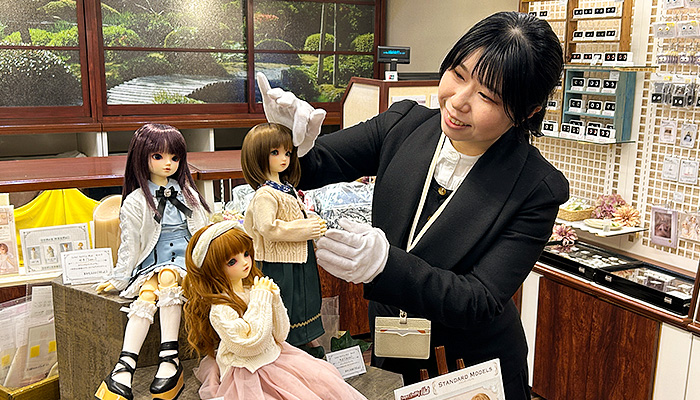 私は京都嵯峨嵐山にあるスーパードルフィー(SD)専門の美術館で勤務しております。専門店のドールアドバイザーとして、お客様が求める理想の商品選びのサポートやSDのセッティング、オーダー受付、売り場作りやSNSの発信、そしてお客様の「好き」や「喜び」に寄り添えるように接客を行っております。